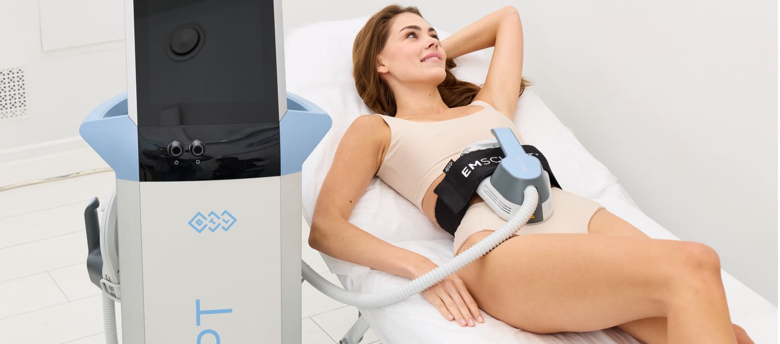 Порой нам сложно найти время на занятия спортом, а постоянный подсчет калорий просто вгоняют нас в состояние постоянного стресса. Как приобрести идеальную фигуру, не прибегая к хирургии, спорту и диетам? Наши специалисты в клиниках сети «Подружки» знают эффективный способ. Нарастить и укрепить мышцы, избавиться от признаков целлюлита и приобрести идеальную форму можно с помощью электромагнитной импульсной терапии на аппарате Emsculpt. Во время процедуры на мышцы воздействуют электромагнитные импульсы, заставляя их максимально сокращаться до 20 000 раз за один сеанс. Вы же в этот момент просто лежите на кушетке с зафиксированными насадками на вашем теле. С помощью процедуры можно создать красивое рельефное тело: плоский живот, придать аппетитную форму ягодицам, прокачать икроножные мышцы, а также бицепс и трицепс.
